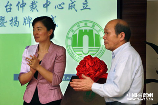2013年5月29日,蘇州涉臺(tái)仲裁中心舉行成立揭牌儀式。(中國(guó)臺(tái)灣網(wǎng)發(fā) 蘇州涉臺(tái)仲裁中心供圖)