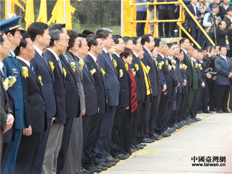 中國臺灣網(wǎng)4月5日黃陵訊 (記者 李寧)“吾祖赫赫,偉業(yè)煌煌,肇始文明,光被遐荒……”5日上午,戊戌(2018)年清明公祭軒轅黃帝典禮在陜西黃陵舉行。兩岸及海外僑胞在內(nèi)的萬余名海內(nèi)外中華兒女齊聚黃帝陵軒轅殿祭祀廣場,共同祭奠人文始祖軒轅黃帝。全國人大常委會副委員長陳竺,全國政協(xié)副主席劉奇葆,陜西省委書記、省人大常委會主任胡和平,中共中央臺辦、國務(wù)院臺辦主任劉結(jié)一,中央統(tǒng)戰(zhàn)部副部長、國務(wù)院僑務(wù)辦公室主任許又聲等分別向軒轅黃帝敬獻(xiàn)花籃。中國國民黨前主席洪秀柱、新黨主席郁慕明等臺灣嘉賓向軒轅黃帝敬獻(xiàn)花籃。