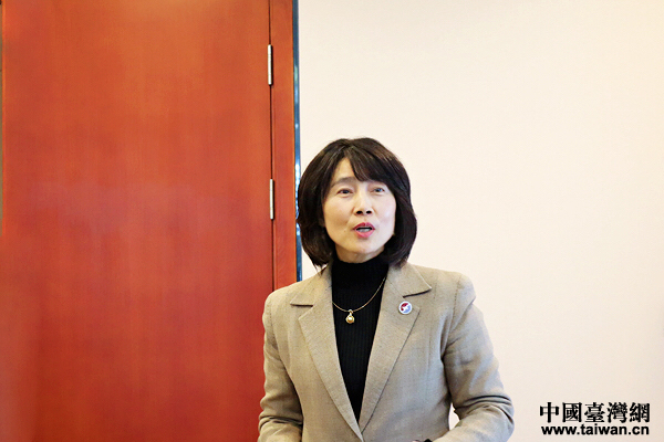 鄭州市臺(tái)協(xié)常務(wù)副會(huì)長(zhǎng)詹麗珠接受記者采訪。(中國(guó)臺(tái)灣網(wǎng) 張亞靜 攝)