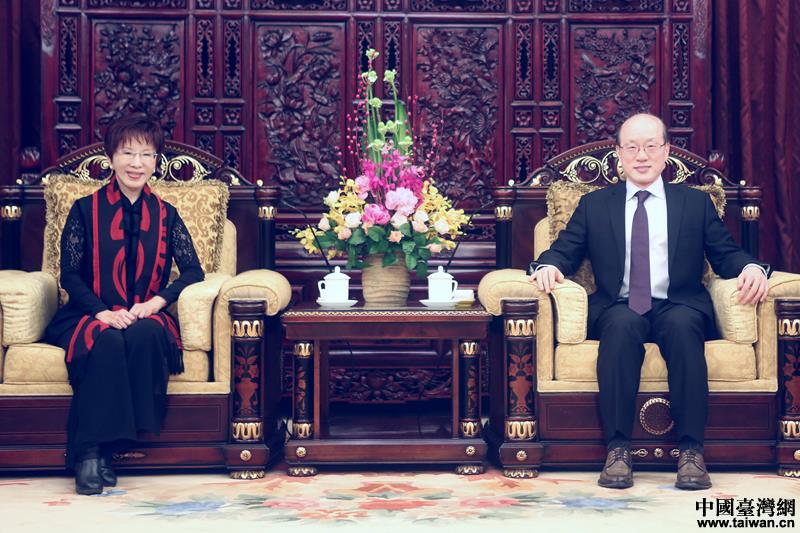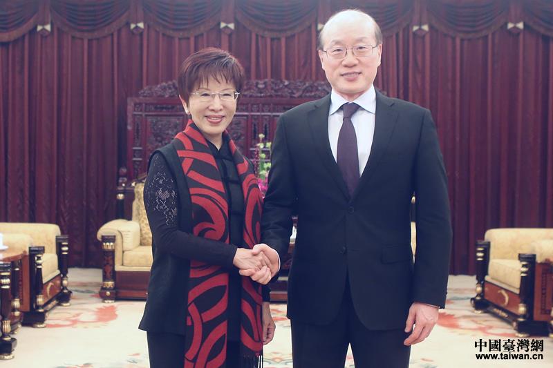 中共中央臺辦、國務院臺辦主任劉結(jié)一會見中國國民黨前主席洪秀柱。(中國臺灣網(wǎng) 扶海濤 攝)