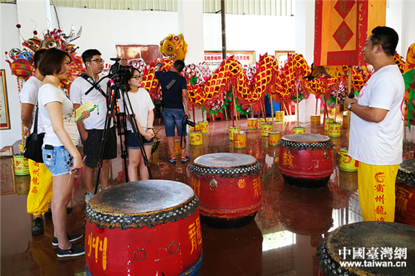 制組采訪賓陽(yáng)賓州炮龍協(xié)會(huì)常務(wù)副會(huì)長(zhǎng)、龍隊(duì)隊(duì)長(zhǎng)莫鐘。(圖片來(lái)源:南寧市臺(tái)辦)