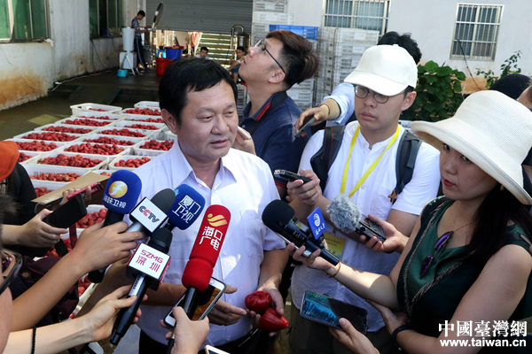 黃益豐長(zhǎng)子、金德豐農(nóng)業(yè)開發(fā)公司副總經(jīng)理黃溶浩接受采訪。(中國(guó)臺(tái)灣網(wǎng) 尹賽楠 攝)