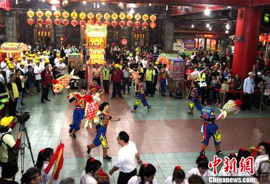 2月24日晚,高雄意誠堂關帝廟年度傳統(tǒng)乞龜活動盛大舉行。圖為民俗表演。黃少華 攝