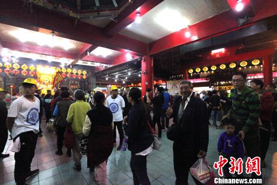 2月24日晚,高雄意誠堂關帝廟年度傳統(tǒng)乞龜活動盛大舉行。圖為民眾扶老攜幼參加鉆轎腳賜福等民俗活動。黃少華 攝