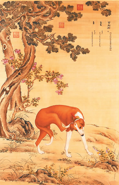 郎世寧《十駿犬之金翅獫圖》
