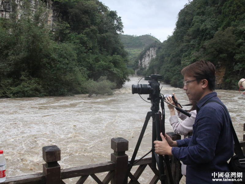 臺(tái)灣NOWnews影音中心主任吳文勝拍攝黃果樹(shù)瀑布。(中國(guó)臺(tái)灣網(wǎng) 李航 攝)