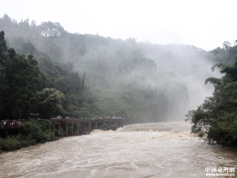 中國(guó)臺(tái)灣網(wǎng)9月26日安順訊(記者 李航)9月26日上午7時(shí)30分左右,因持續(xù)強(qiáng)降雨,黃果樹(shù)瀑布水量大幅度增加,根據(jù)黃果樹(shù)水文監(jiān)測(cè)站提供數(shù)據(jù),黃果樹(shù)瀑布流量達(dá)到376立方米/秒,相當(dāng)于每秒有376噸水從大瀑布頂部跌落,大瀑布開(kāi)啟了“瀑聲震天,十里相聞”的“怒吼模式”。