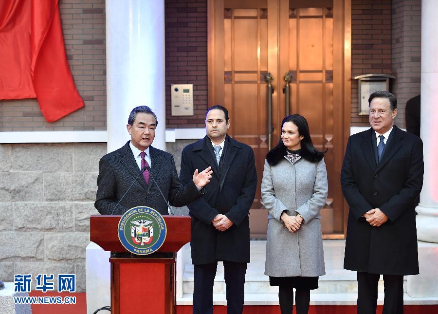 11月16日,巴拿馬駐華大使館在北京正式開館。巴拿馬總統(tǒng)巴雷拉和中國外交部長王毅共同出席開館儀式。 新華社記者 燕雁 攝