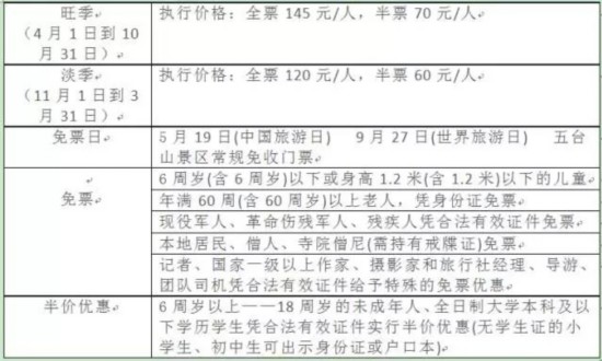 旺季時間:4月1日到10月31日;旺季景區(qū)門票:125元/人次,觀光車票:90元/人次(含往返)。