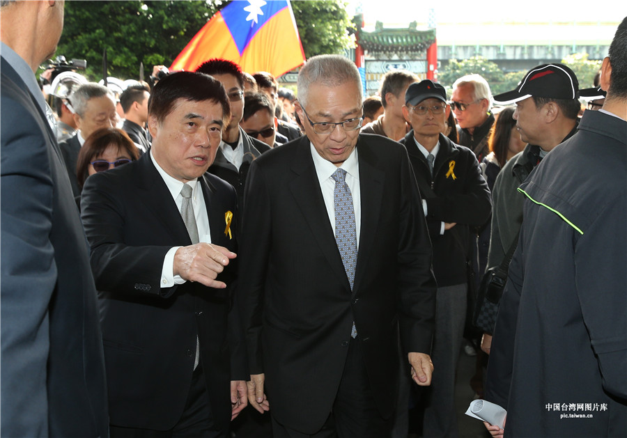 中國臺灣網(wǎng)3月23日訊 臺軍退役上?姷律2月底在反軍人年改抗議中,因在“立法院”攀墻不慎跌落重傷不治,其家人于3月22日上午舉行告別儀式,中國國民黨主席吳敦義(中)、副主席郝龍斌(左)前往致祭。(來源:中國臺灣網(wǎng)圖片庫 攝影:林俊良)