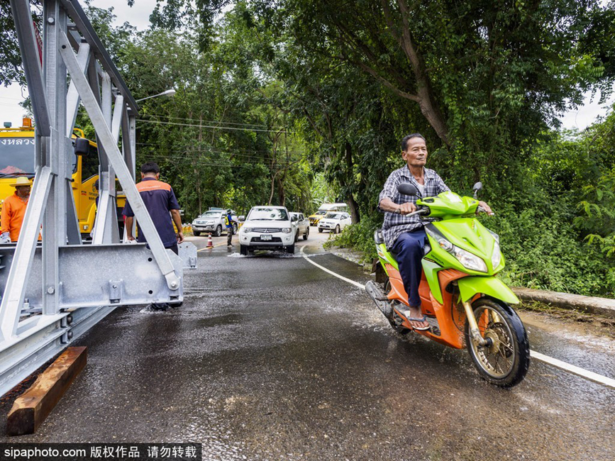 當(dāng)?shù)貢r間2018年8月9日,泰國碧武里,泰國皇家海軍的船只排成縱隊穿過菲恰布里河,海軍使用船上的螺旋槳在洪水發(fā)生時將洪水推到下游。這些船只被預(yù)先安置在河上,因為預(yù)計本周洪水會來襲。菲恰布里河從Kaeng Krachan水壩流入暹羅灣,流經(jīng)幾個城鎮(zhèn)。政府官員警告這些城鎮(zhèn)的居民說,他們的城鎮(zhèn)將會被洪水淹沒,因為大壩后面的水庫的容量正在接近飽和。