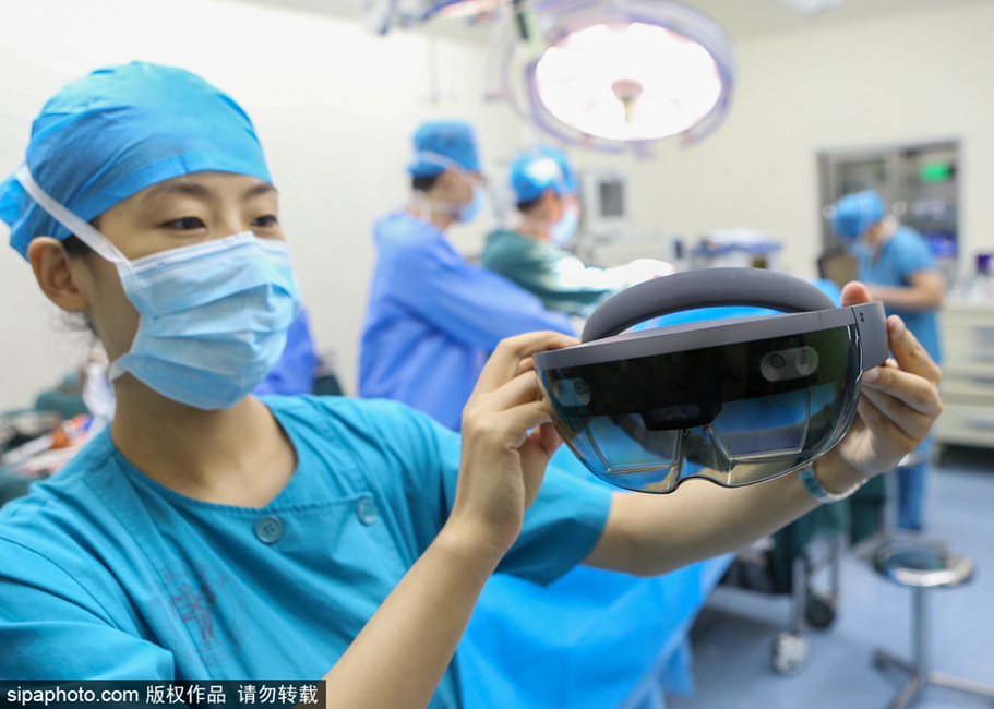 手術(shù)醫(yī)生戴上混合現(xiàn)實(shí)眼鏡(光學(xué)透射式頭盔),還未開刀患者病灶就以3D影像呈現(xiàn)眼前,骨頭、血管、神經(jīng)和病灶全部透明化清晰顯露……這不是影院中“科幻大片”的鏡頭,而是近日西安市紅會(huì)醫(yī)院首次在“混合現(xiàn)實(shí)”技術(shù)引導(dǎo)下為一位15歲的少女實(shí)施脊柱畸形矯形手術(shù)。