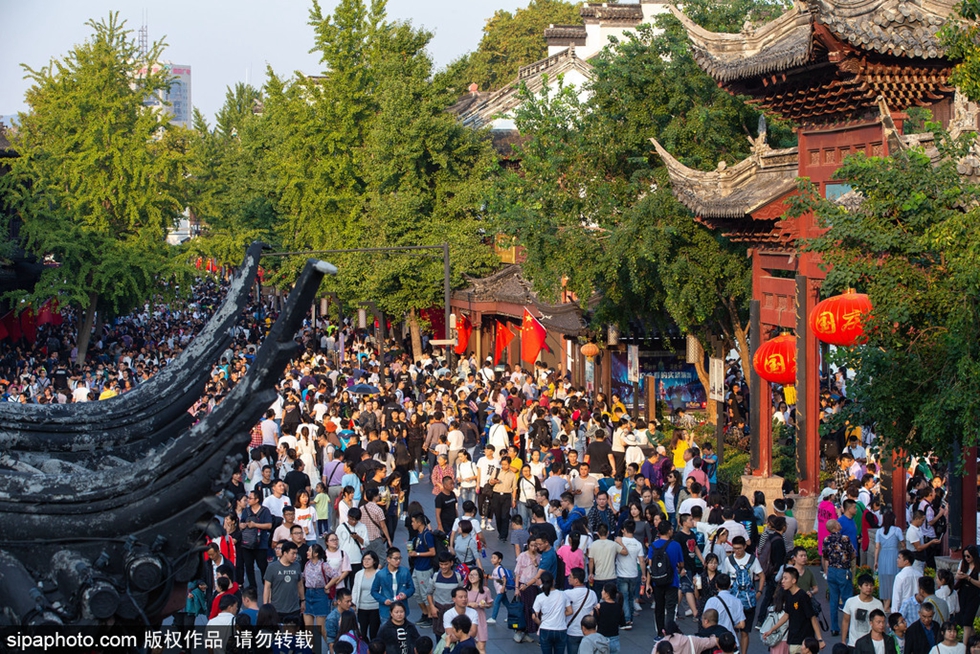 2018年10月4日,江蘇南京,游客在南京夫子廟景區(qū)參觀游覽。