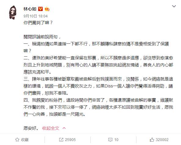 從2013年到2017年這條舊聞就跟被策劃好了一樣一遍遍翻新炒作,這得是有多大仇多大怨才能如此堅持不懈年年黑?時隔十多年,周杰終于忍不了而澄清了。9月6日,周杰發(fā)微博怒懟林心如,并扯上兩岸話題,稱林心如在臺灣節(jié)目惡意詆毀大陸人。