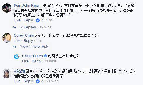 有臺灣網(wǎng)友指民進(jìn)黨的“非核家園”也訂在2025年,諷刺其除了會(huì)開“空頭支票”外什么都不會(huì)做;更有人嘲諷道“我真等到花兒也謝了!大陸現(xiàn)在都快普及了,臺灣還要等這么多年,政客們簡直是在尸位素餐”;還有島內(nèi)網(wǎng)友感嘆:聽說大陸都可以“刷臉支付”了,我們卻還在為移動(dòng)支付爭論不休,臺灣的發(fā)展機(jī)會(huì)就這樣白白浪費(fèi)掉。