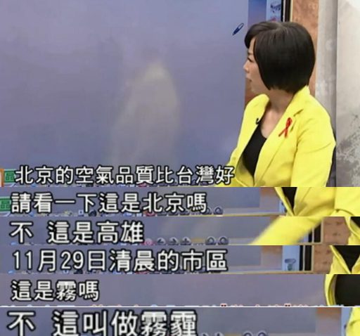 像前不久來北京工作的臺灣知名政論節(jié)目主持人黃智賢,就在節(jié)目中用一組圖對比了如今臺灣與北京在空氣質量上的差別,稱:北京的空氣品質真的比臺灣好。