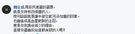 知名政論評論人費鴻泰也表示,民進黨真的應該好好檢討下,選舉時說好的“用愛發(fā)電”,如今卻變成“用肺做功德”。