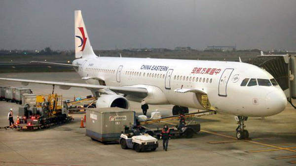圖為1架東方航空班機(jī)從上海飛抵桃園機(jī)場(chǎng)。(圖片來(lái)源:臺(tái)灣《中時(shí)電子報(bào)》)