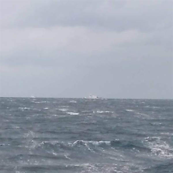 臺灣蘭嶼目前海象惡劣,從船上拍攝的照片可看得出風(fēng)浪非常大。(圖片來源:臺灣《中時電子報》)
