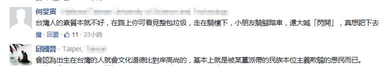 崗山之眼的不文明游客行徑一經(jīng)曝光便引發(fā)了許多臺(tái)灣網(wǎng)友的談?wù)摚?strong>其中很大一部分人認(rèn)為臺(tái)灣人的公德標(biāo)準(zhǔn)確實(shí)不高,需要改進(jìn),“臺(tái)灣人本來(lái)就沒(méi)有比較優(yōu)越,作過(guò)服務(wù)業(yè)的就知道”、“以前在機(jī)構(gòu)服務(wù)最討厭的就是臺(tái)灣人”。