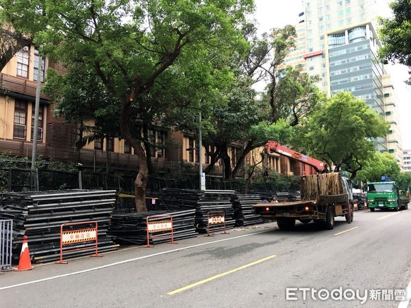 臺(tái)灣“立法院”外增加拒馬。(圖片來源:臺(tái)灣“東森新聞云”)