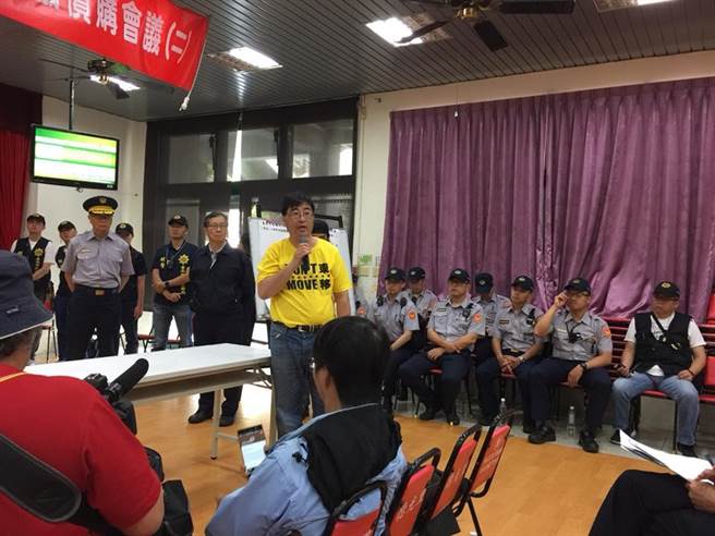 臺(tái)灣政治大學(xué)地政系教授徐世榮對(duì)此表示,“一個(gè)協(xié)議價(jià)購(gòu)會(huì)議,警察竟然這么多,宛如是恢復(fù)到過(guò)往戒嚴(yán)時(shí)期!保▓D片來(lái)源:臺(tái)灣《中時(shí)電子報(bào)》)