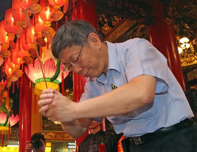 臺北市長柯文哲8日出席松山慈佑宮天上圣母1059周年祝壽三獻(xiàn)大典。 (圖片來源:臺灣“中時電子報”)