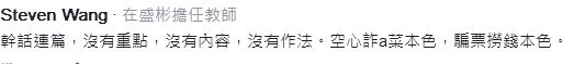 蔡英文此言一出即遭到臺(tái)灣網(wǎng)友痛批“自我安慰,阿Q想法,今年就是去不了,明年后年應(yīng)該也去不了!薄拔那嘧x稿機(jī),再度發(fā)揮自慰精神!薄斑x一個(gè)敗家的來(lái)搞垮臺(tái)灣”“講的全是屁話(huà)!”