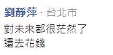 臺(tái)網(wǎng)友對(duì)此怒罵“今年花完,明年沒(méi)錢(qián)繳稅,你是要替我繳嗎?”“‘鬼島’悲哀!”“毫無(wú)儲(chǔ)蓄概念。”“她哪來(lái)的自信不會(huì)搞垮臺(tái)灣經(jīng)濟(jì)啊。”“干話(huà)筒”“到底在講什么。 薄芭_(tái)北股市現(xiàn)在一萬(wàn)多點(diǎn)叫人家趕快進(jìn)來(lái)買(mǎi)股票?是讓外資比較好出貨嗎?萬(wàn)一520當(dāng)天臺(tái)股下殺破九千點(diǎn),菜你要賠嗎?說(shuō)你們綠色‘臺(tái)獨(dú)黨’是詐騙集團(tuán),真的不假!薄斑@黨說(shuō)的話(huà)聽(tīng)不得,我看可能又要搞老百姓了!”