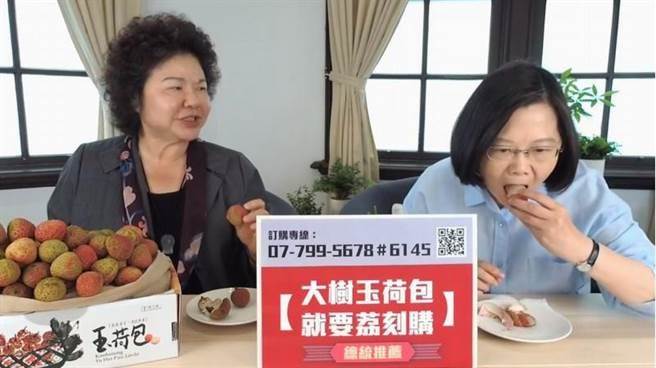 蔡英文、陳菊5月24日在臉譜網(wǎng)開直播,幫忙農(nóng)民推銷玉荷包。(圖片來源:蔡英文臉譜網(wǎng))