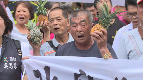 鳳梨農(nóng)北上抗議。(圖片來源:臺灣“東森新聞云”)