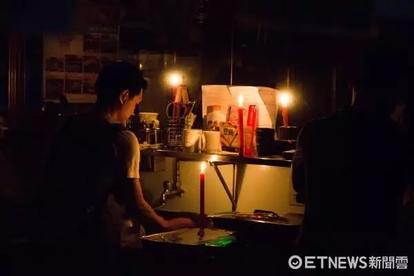 2017年8月15日,全臺(tái)大停電,店家摸黑做生意。(圖片來(lái)源:臺(tái)灣“東森新聞云”)