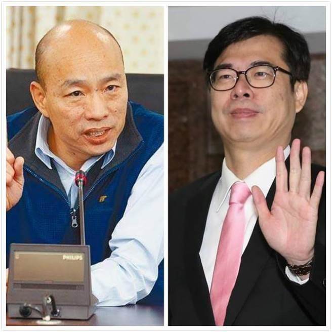 國(guó)民黨高雄市長(zhǎng)參選人韓國(guó)瑜(左)節(jié)節(jié)進(jìn)逼,嚇得民進(jìn)黨高雄市長(zhǎng)參選人陳其邁再也不敢躺著選了。(臺(tái)媒合成圖)