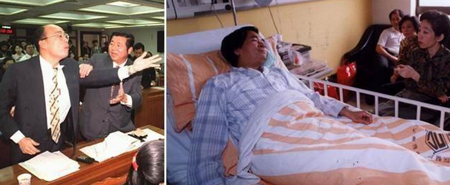 1993年因陳水扁在“立院”說(shuō)“養(yǎng)榮民等于養(yǎng)豬”,韓國(guó)瑜氣得當(dāng)場(chǎng)臭揍陳水扁,把其打得住院三天。(臺(tái)媒合成圖)