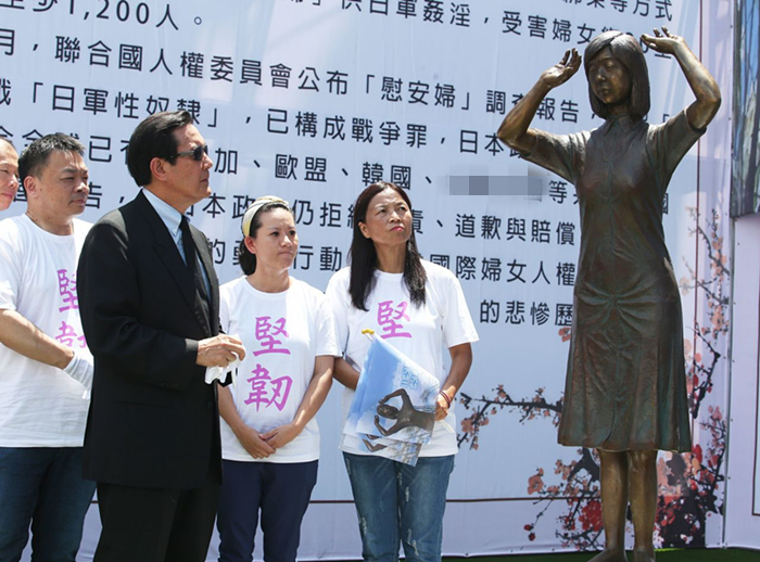 14日是國(guó)際慰安婦日,全臺(tái)首座慰安婦銅像當(dāng)天在臺(tái)南揭幕,這座高約兩米的銅像設(shè)在國(guó)民黨臺(tái)南市黨部旁的空地上,對(duì)面是日據(jù)時(shí)期興建的林百貨。馬英九出席揭幕式,并對(duì)民進(jìn)黨當(dāng)局通過(guò)“促進(jìn)轉(zhuǎn)型正義條例”后,沒(méi)有進(jìn)一步向日本政府求償表達(dá)遺憾。臺(tái)灣“婦女救援基金會(huì)”昨日則前往“日本臺(tái)灣交流協(xié)會(huì)”抗議,向日本討公道。尷尬的是,臺(tái)當(dāng)局官方對(duì)此一片靜默。