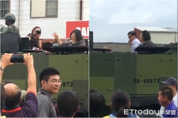 蔡英文勘災神似謝票:坐裝甲車、微笑向災民揮手致意
