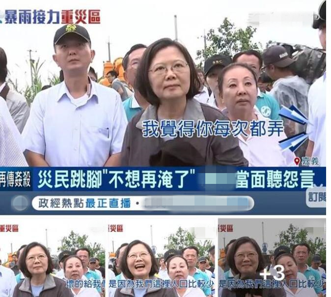 不過,這還沒完,在聆聽災民抱怨時,蔡英文竟整個笑噴,再度引發(fā)爭議。據(jù)臺媒報道,一位女性災民當場向蔡英文抱怨抽水機問題“我覺得你每次都用壞的給我們,是不是因為我們?nèi)丝诒容^少”,沒想到蔡英文聽完竟當場噴笑出來,之后似乎覺得不妥趕緊拿東西遮嘴,隨后又笑嘻嘻地說“下次給你一個新的啦!”