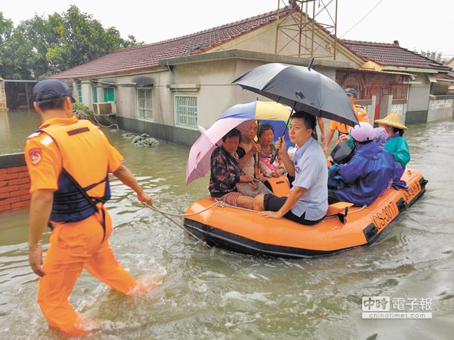臺(tái)南北門區(qū)玉港里水淹過(guò)膝,多名高齡長(zhǎng)者受困屋內(nèi)出不了門。(圖片來(lái)源:臺(tái)灣“中時(shí)電子報(bào)”)