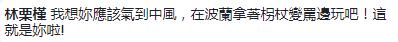 網(wǎng)友們紛紛留言“她現(xiàn)在豈不瘋掉了,淹大水耶!是全部南臺灣呢!”“邱大‘委員’這次怎么沒有講快要中風,你是以黨論黨嗎?”“氣到趕快去波蘭狂歡來壓壓驚咩”“你怎么不罵了?難不成你中風了?丟臉啊。”“現(xiàn)世報來的真快啊”“一個旗山人跑去金門玩,一個旗山‘立委’跑去波蘭玩,不知道這次屏東女兒要砸?guī)着_電視呢?”