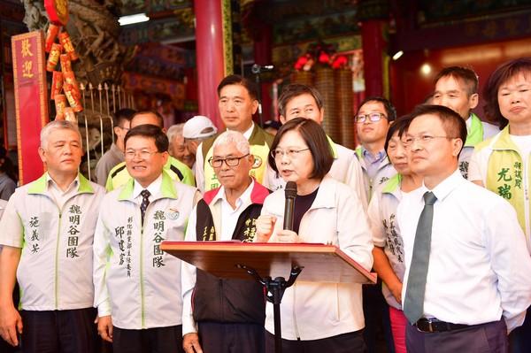 蔡英文日前為彰化縣長(zhǎng)魏明谷站臺(tái)。(圖片來(lái)源:臺(tái)灣“東森新聞云”)