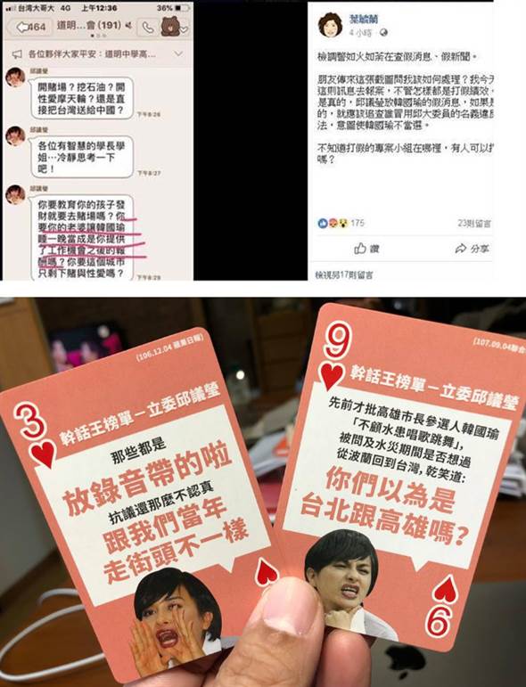民進(jìn)黨干話撲克牌中收錄邱議瑩的干話。(圖片來源:臺(tái)灣《中時(shí)電子報(bào)》)