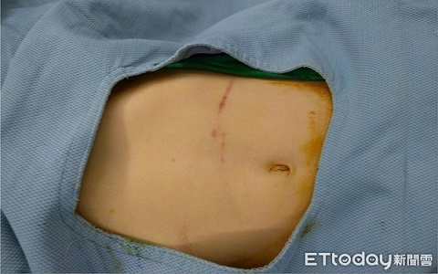林雨利主任表示,雖然超音波檢查未發(fā)現(xiàn)有異狀,X光顯示腹部有漲氣,但抽血檢查發(fā)現(xiàn)其肝指數(shù)偏高,進(jìn)一步做電腦斷層時,發(fā)現(xiàn)顯影劑有外滲情形,本來應(yīng)該在血管里的顯影劑已滲到腹腔,懷疑腸胃道有破裂情形,經(jīng)緊急開刀,赫然發(fā)現(xiàn)胃部下方幽門附近完全斷裂,斷裂的兩端正在出血,傷口平整,宛如遭利刃切斷,立即將斷成兩半的胃接合。