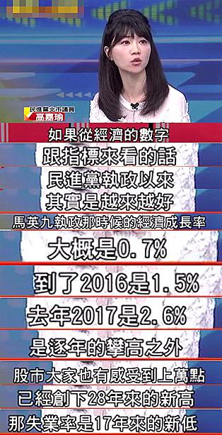 來(lái)看看這位民進(jìn)黨議員是如何為“鐵票倉(cāng)跳票”作解釋的吧:民進(jìn)黨曾批判馬英九是“數(shù)字治臺(tái)”,而這個(gè)綠營(yíng)小姐姐一上來(lái)就先祭出“數(shù)字陣”,說(shuō)從經(jīng)濟(jì)指數(shù)上看,民進(jìn)黨與馬英九執(zhí)政時(shí)期好很多了;之后拿出“甩鍋招”,說(shuō)飯店倒閉有很多方面的原因啊,店家不要都怪到民進(jìn)黨身上,你們自己也要轉(zhuǎn)型。接著開(kāi)始“數(shù)政績(jī)”,說(shuō)陸客雖然不來(lái)了,但日本和東南亞客人有增加啊,而且像臺(tái)中市長(zhǎng)林佳龍之類(lèi)的也有積極的幫地方在招商。最后搬出“誠(chéng)懇臉”,表示雖然民進(jìn)黨做了很多“復(fù)興經(jīng)濟(jì)”的事,但若人民感受不到,那蔡當(dāng)局也會(huì)“好好檢討”……