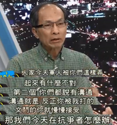 一時(shí)間,似乎整個(gè)運(yùn)論風(fēng)向開始轉(zhuǎn)變,退休軍人成為眾矢之的。而實(shí)際情況是什么樣?臺(tái)灣媒體人在政論節(jié)目中描述了當(dāng)時(shí)的現(xiàn)場(chǎng)情形。