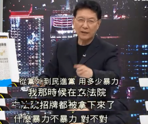 臺(tái)灣媒體人在節(jié)目中分享自己的從政經(jīng)歷,當(dāng)年民進(jìn)黨鬧起來的時(shí)候,“立法院”的招牌都被摘下來了,還有臉批“暴力”?