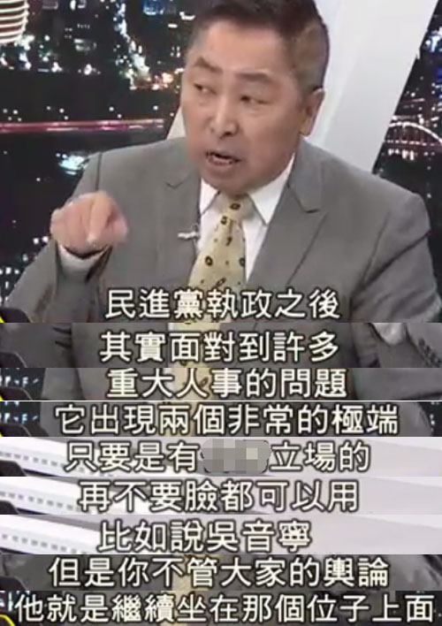 唐湘龍強(qiáng)調(diào),自從民進(jìn)黨上臺之后,但凡遇到重大的人事任命,皆是只問顏色,不看對錯,吳音寧、吳茂昆,兩個“吳氏生非”,即使外界的爭議再大、再不要臉,他們也依然可以坐在那個位子上;而反觀管中閔,只因?yàn)椴皇恰熬G”的,即使再要臉,民進(jìn)黨也會想盡辦法將他拉下來,“臺灣走到今天這個地步還有救嗎?”