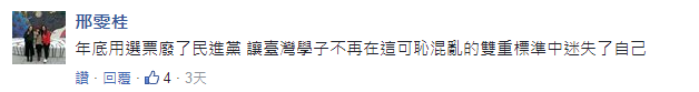 對此,島內(nèi)網(wǎng)友也紛紛聲援管中閔及臺大師生,并譴責(zé)臺當(dāng)局“干話”頻頻,以愚弄百姓為樂;還有人呼吁,年底用選票“廢了”民進(jìn)黨,不要讓臺灣學(xué)子在混亂的雙重標(biāo)準(zhǔn)中迷失自己。
