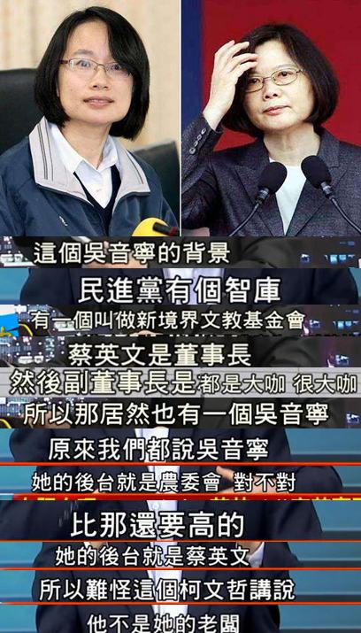 難怪吳音寧就算再無腦、再出包,柯文哲也好,北農(nóng)董事長陳景峻也罷,都不敢動(dòng)她分毫,因?yàn)樗麄兌疾皇撬嬲睦习迓铮?/p>