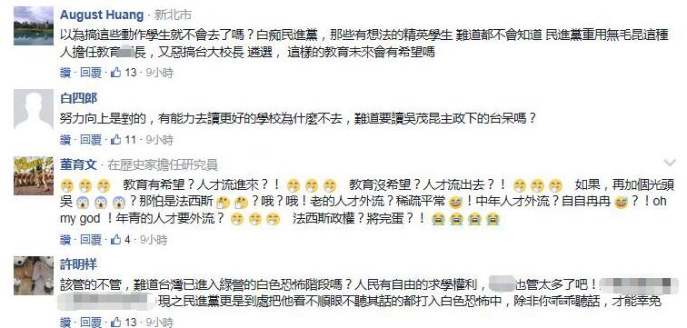網(wǎng)友們聞此不僅直言“不會(huì)以為搞這些動(dòng)作學(xué)生就不去了吧”,更嘆:臺(tái)灣是沒有言論自由了嗎?