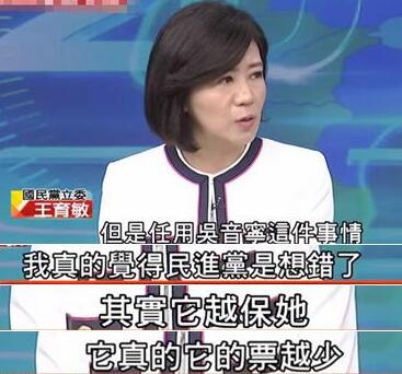 在6日民進(jìn)黨“中常會”上,連蔡英文都出來為她掛保證啦!她說“吳音寧是一個有能力、會做事的人,但可能不是很熟悉政治”,還說“希望平衡錯誤的新聞”。